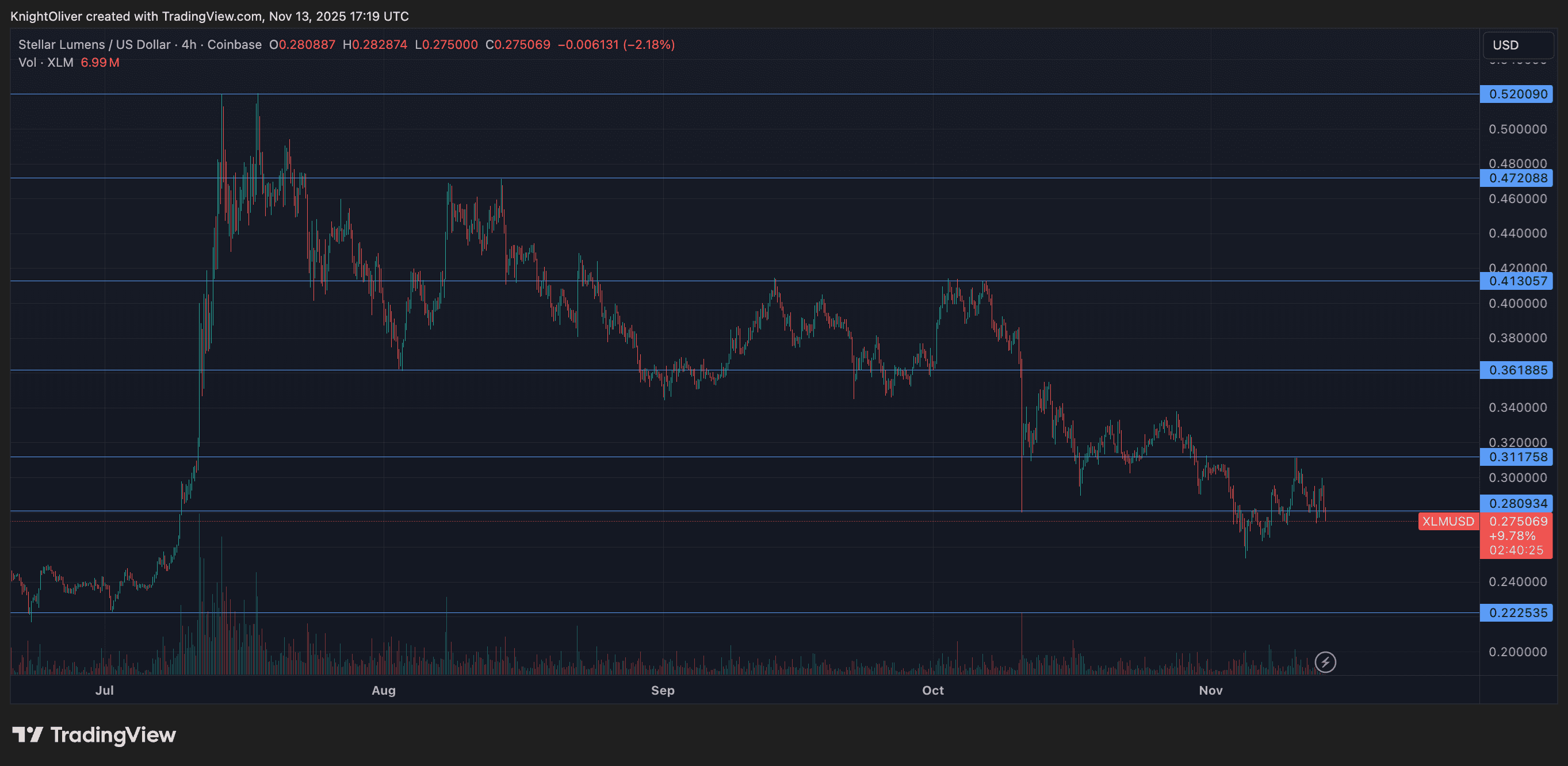 Stellar Tumbles Below Key $0.285 Support as Bears Take Over